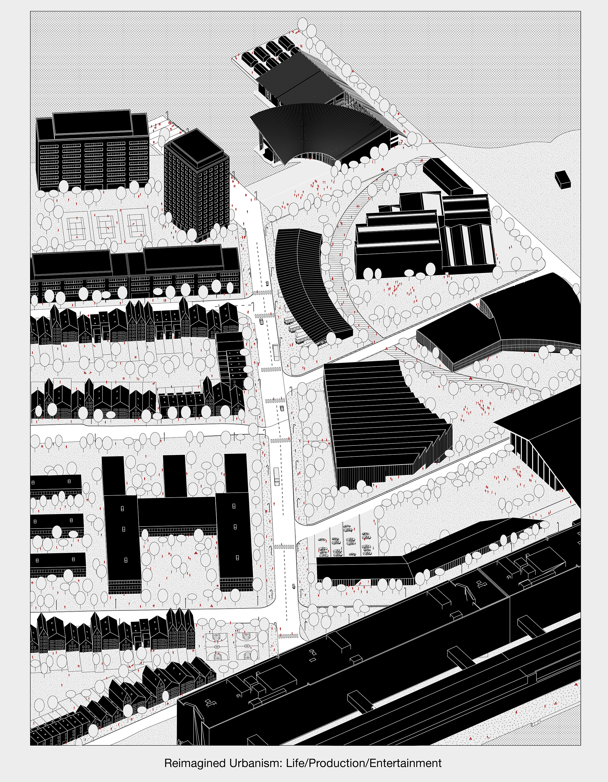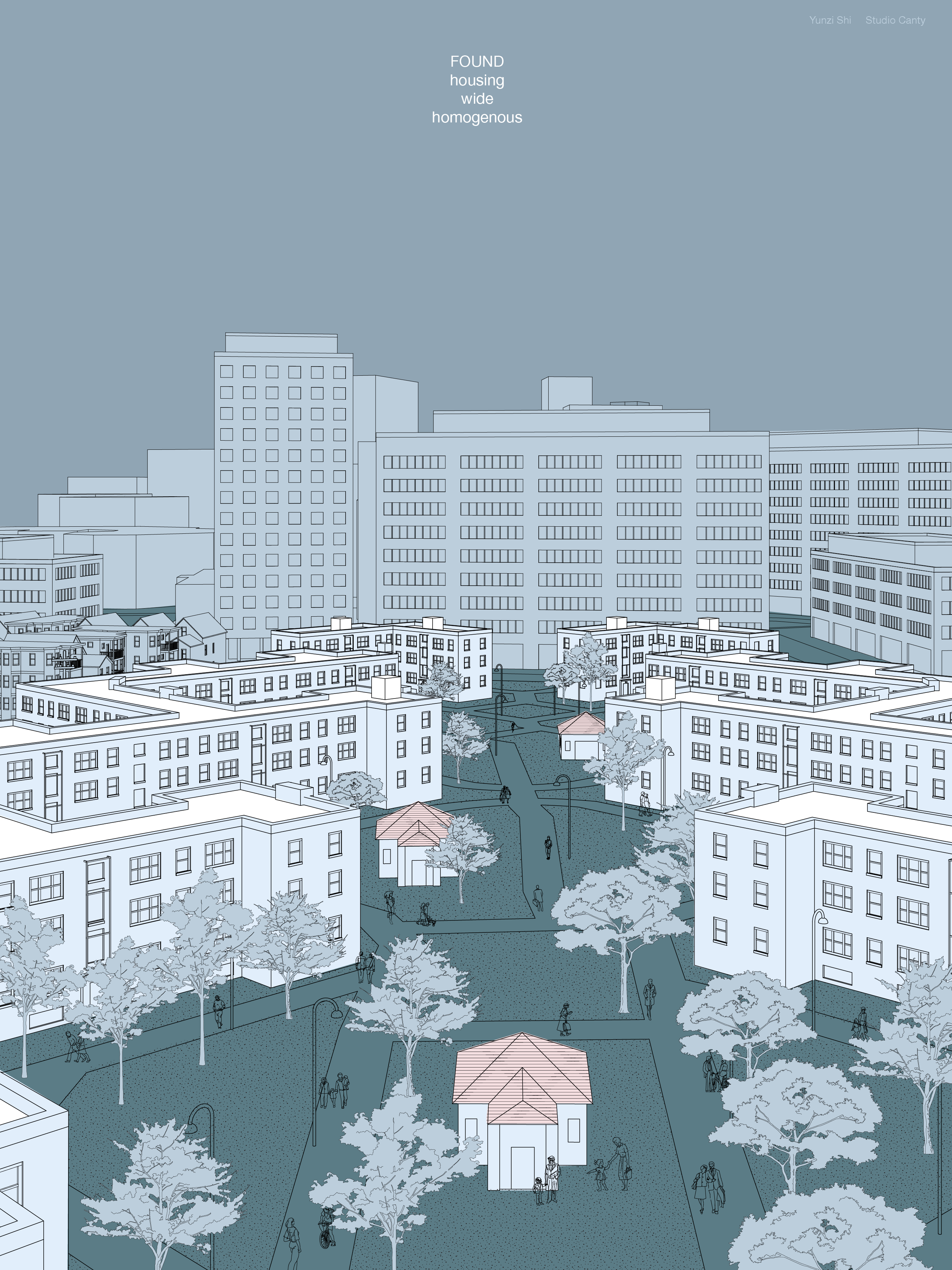 A series of visual exercises in representing the urban transformation taking place in Cambridge, MA and Boston across time. In a comic-like style, the studies seek to represent gentrification and homogeneity that comes with urban sprawl, and propose alternative to transform post-industrial lands into community hubs.